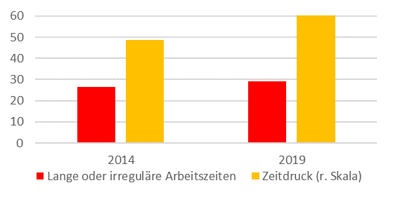 Politisch müsste es jedoch in die Gegenrichtung gehen. Die Lage der Arbeitnehmenden in den Firmen gibt Anlass zur Sorge. Das geben selbst die Arbeitgeber in Umfragen zu. Knapp 30 Prozent der Schweizer Firmen sagten im Rahmen der ESENER-Umfrage, dass bei ihnen lange und irreguläre Arbeitszeiten ein Gesundheitsrisiko sind – Tendenz steigend. Und rund 60 Prozent der Firmen machen sich Sorgen über den Zeitdruck bei ihren Mitarbeitenden.