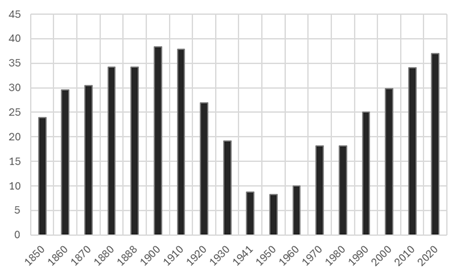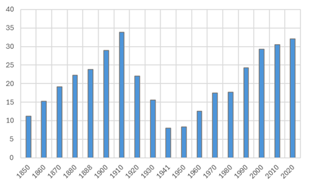 Vor der Industrialisierung war die Schweiz ein Auswanderungsland. Aus wirtschaftlichen Gründen verliessen viele ihre Heimat um in Amerika eine bessere Existenz aufzubauen. Das änderte sich ab Mitte der 19. Jahrhunderts. Neben Flüchtlingen kamen zunehmend ArbeitsmigrantInnen in die Schweiz. Der Ausländeranteil verfünffachte sich bis ins Jahr 1910 von knapp 3 auf über 15 Prozent. In Städten wie Zürich oder Basel war der Anteil der EinwohnerInnen ohne Schweizer Pass zu Beginn des 19. Jahrhunderts sogar höher als im Jahr 2020. Interessant ist, dass die politische Elite damals nicht Beschränkungen der Einwanderung forderte. Sie wollte mehr einbürgern, weil sie den hohen Ausländeranteil vor allem als ein Gefahr für die Demokratie wahrnahm.
