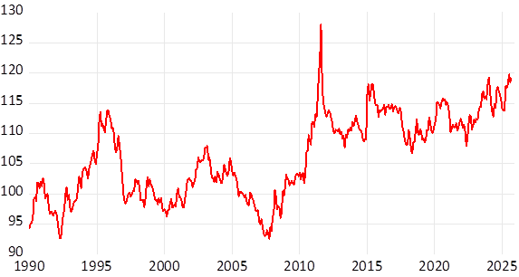 Der Franken hat sich seit Anfang Jahr aufgewertet. Obwohl er gegenüber dem Dollar wegen den US-Zöllen hätte schwächer werden müssen. Der reale Frankenkurs ist nun sogar höher als im Januar 2015 – nach der Aufgabe des Franken-Mindestkurses durch die SNB.