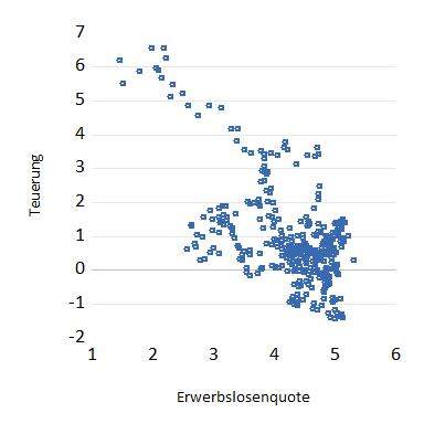 Mit der steigenden Teuerung stellt sich überall die Frage, wann die Geldpolitik mit einem restriktiveren Kurs gegensteuern soll. Damit würde der Aufschwung abgebremst. Mit dem Ziel, dass die Löhne und die Preise weniger stark steigen, dafür mehr Arbeitslosigkeit in Kauf genommen werden muss. Dieser negative Zusammenhang zwischen Teuerung und Erwerbslosigkeit ist in der Grafik unten gut erkennbar.