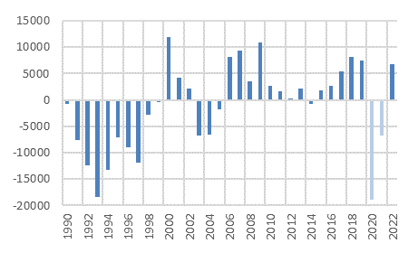 Selbst unter der Schuldenbremse hat der Bund erheblichen finanzpolitischen Spielraum. Erstens sollte die Schuldenbremse verfassungskonform angewendet werden, so dass die Einnahmen und Ausgaben auf Dauer im Gleichgewicht sind; und nicht die budgetierten Einnahmen und Ausgaben. Das alleine gibt dem Bund über 1 bis 1.5 Mrd. Fr. zusätzlichen Spielraum. Zweitens übernimmt der Bund immer mehr Aufgaben von Kantonen oder Gemeinden, wegen der höheren Mobilität der Bevölkerung, der Demografie, der Digitalisierung oder der Tertiarisierung der Ausbildung usw. Diese Verschiebung muss finanziert werden. Wenn pro Jahr – zurückhaltend geschätzt - 0.25 Prozent der Auf- und Ausgaben von den Kantonen und Gemeinden zum Bund geht, bedeutet das, dass auch über 200 Mio. Fr. in Richtung Bund transferiert werden müssen (gemessen an den Bundesausgaben). Oder vom Bund nicht an die unteren Gebietskörperschaften ausbezahlt werden sollen. In wenigen Jahren summiert sich das auf 1 Mrd. Fr. jährlich.