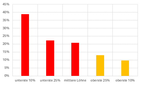 Die Belastung der einkommensschwächsten 10 Prozent ist um fast 40 Prozent gestiegen. Die mittleren Einkommen zahlen 20 Prozent mehr Zwangsabgaben. Bei den TopverdienerInnen hingegen stieg die Belastung kaum, weil sie mit ihrem hohen Einkommen die Prämienlast kaum spüren. Diese Steuer- und Abgabenpolitik ging völlig in die falsche Richtung. Den unteren und mittleren Einkommen eine zusätzliche Steuerlast aufgebürdet, wie es in der Schweiz bisher kaum vorkam. Viele Leute wissen nicht mehr, wie sie das noch zahlen sollen. Wenn die Prämien nicht gedeckelt, wird die Mehrbelastung weiter zunehmen. Fürs nächste Jahr wird ein Prämienanstieg von 6 Prozent vorausgesagt. In den Folgejahren drohen nochmals weitere 4 Prozent pro Jahr. Diese unsoziale Steuer- und Abgabenpolitik widerspricht auch den Grundsätzen des Schweizer Staates. Die Verfassung verlangt eine Besteuerung nach der wirtschaftlichen Leistungsfähigkeit. Die Entwicklung der letzten Jahre ging hingegen in die Gegenrichtung.