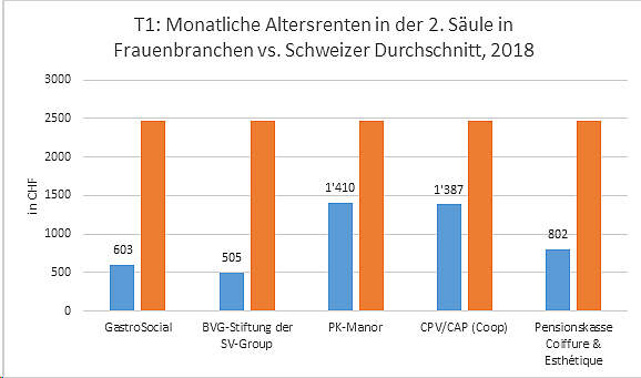 Besonders prekär ist die Situation zum Beispiel in der Gastronomie, wo die PK-Renten weniger als ein Viertel des Durchschnitts betrugen. Die bedeutendsten Vorsorgeeinrichtungen der Branche, GastroSocial und BVG-Stiftung der SV-Group, bezahlten durchschnittlich nur rund 600 bzw. 500 Franken Rente. Zum Vergleich: Die durchschnittliche Schweizer PK-Rente liegt bei 2'471 Franken.